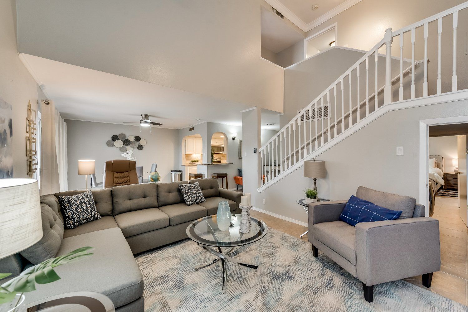 Enjoy the space and comfort of our 3-bed, 3-bath condo, complete with a cozy front patio and a private fenced backyard. The ground floor features a bedroom with a queen bed and an en-suite bathroom with a shower and toilet. Revel in the high ceilings of the spacious living room and dine with a view in the separate dining area overlooking the backyard. The laundry room is smartly situated under the stairs leading to the upper floor, where you'll find the master bedroom with a king-sized bed and attached bathroom. The second bedroom is adaptable with twin beds that can convert to a king, accommodating up to 6 guests comfortably. The large backyard is ideal for outdoor barbecues or just unwinding in the open air.