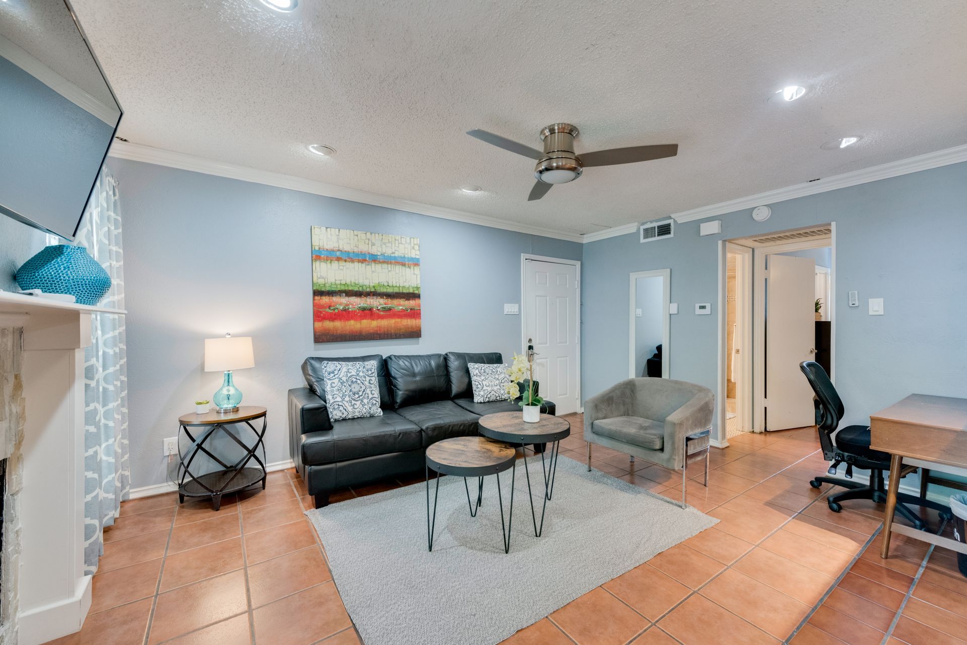 Explore Red Rose, a 1BD 1BA condo (589 sqft) in Irving's gated community. Enjoy a king-size bed, sofa bed, walk-in shower, washer/dryer, TV, and utilities. The kitchen is well-supplied with elegant glassware. Community perks include: gym, pool, cinema, assigned covered parking, shareable WIFI, and easy to HWY 183 & 161 Baylor Medical Center and DFW airport access. Review the 'OTHER THINGS TO NOTE' section.
