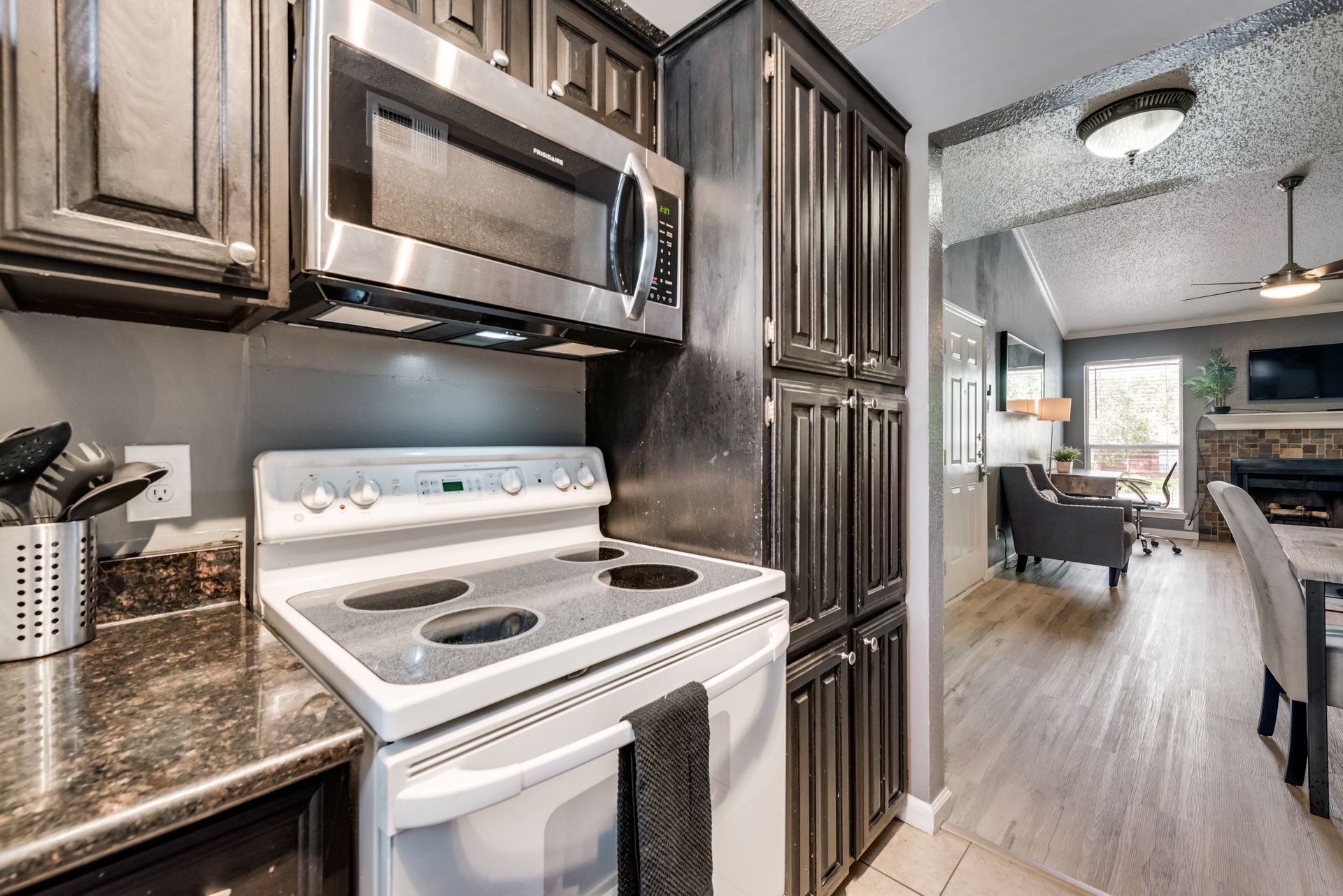 Tranquil 2BD/2BA second-floor condo in a gated community. Features include a fully-equipped kitchen with full-sized appliances & an in-unit washer/dryer, and a pool. Decorated in serene grays with vibrant accents, it features modern amenities, stainless steel appliances, & contemporary furniture, creating a perfect haven for relaxation after a busy day. Easy access to HWY 183 &161, and DFW Airport. Review the 'OTHER THINGS TO NOTE' section.