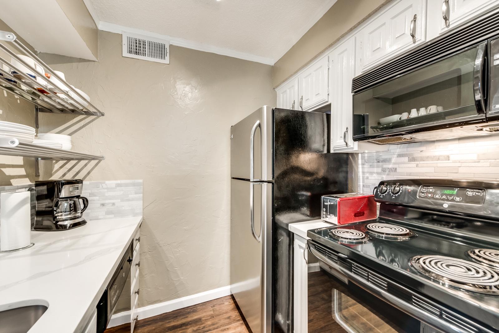 Relax on the plush sofa, kick back, and indulge in your preferred shows on the 48” flat screen TV. Alternatively, catch your favorite TV programs or games in the master bedroom on the 40” flat screen. Enjoy complimentary access to Spectrum App, offering a range of top-notch entertainment options like Netflix and Hulu. For productivity, utilize the high-speed internet and the cozy desk and chair.