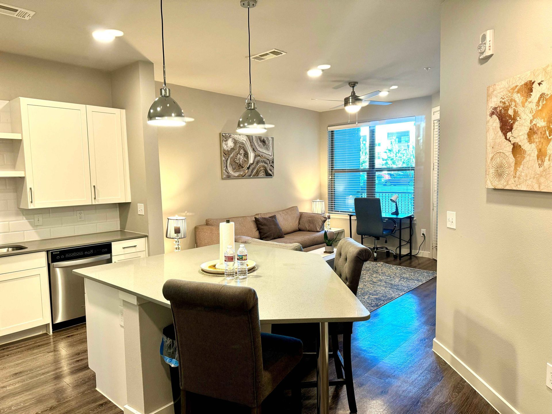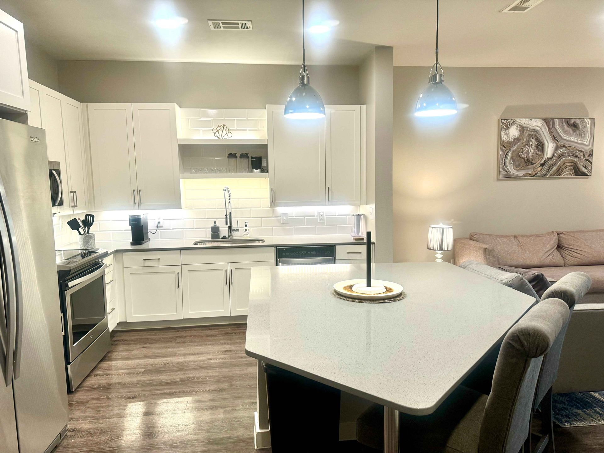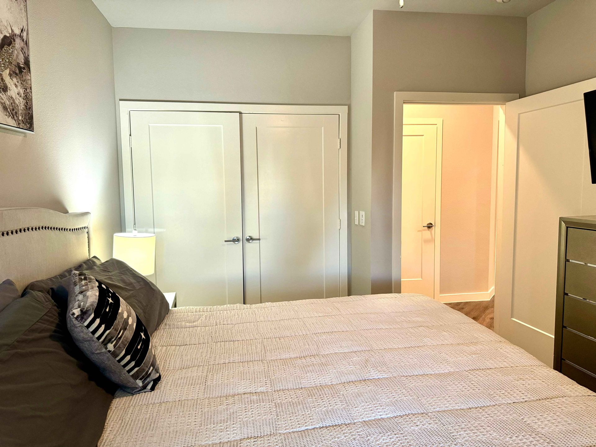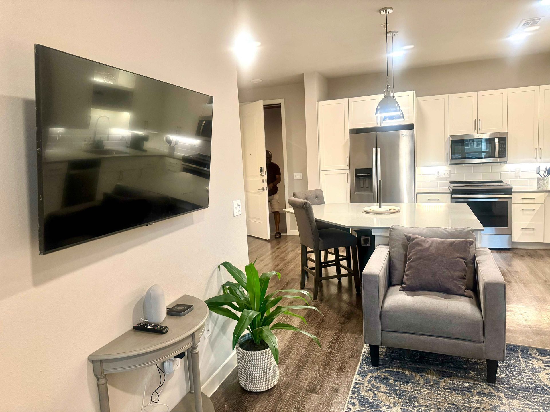This 1bd/1ba apartment features modern kitchens, smart home appliances, and a Kingsize Bed. The spacious bathroom includes a bathtub/shower. Enjoy the convenience of a washer/dryer in the unit, workstation. Equipped with two smart TVs and 1Gb ATT WIFI. All utilities are included, and ample parking is available. Access to the pool, gym, and clubhouse areas.