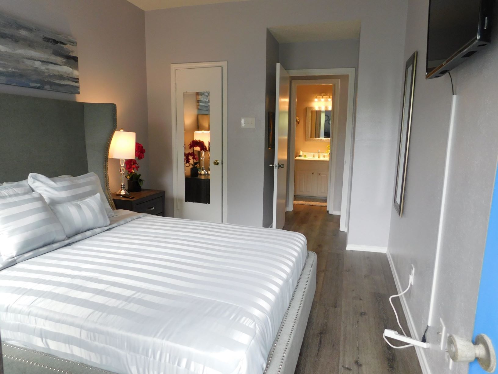 This well-lit condo offers both functionality and comfort. It features a flat-screen TV for leisurely enjoyment and a well-equipped kitchenette with double sinks and full-sized stainless steel appliances for delightful meal preparation. Additionally, there's a cozy desk and chair for productive work. Situated in a tranquil community with minimal foot traffic, it ensures a restful stay.