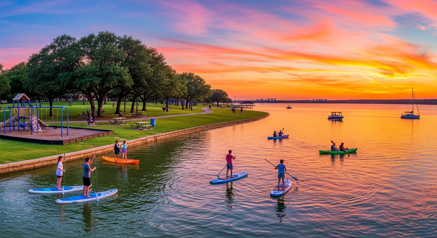 Grapevine Lake – Water recreation, parks, and scenic sunset views.