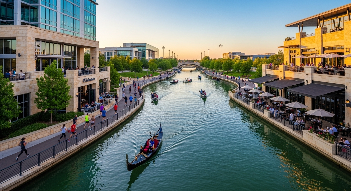 Las Colinas Waterfront – Scenic canals, jogging trails, gondola rides, and lakeside dining create one of North Texas’s most stunning urban water environments.