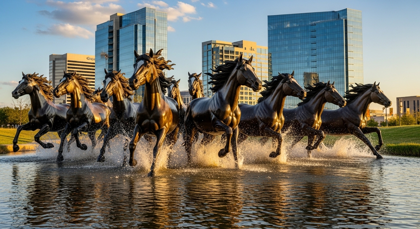Mustangs of Las Colinas – A massive, dramatic bronze sculpture celebrating Texas spirit and power.